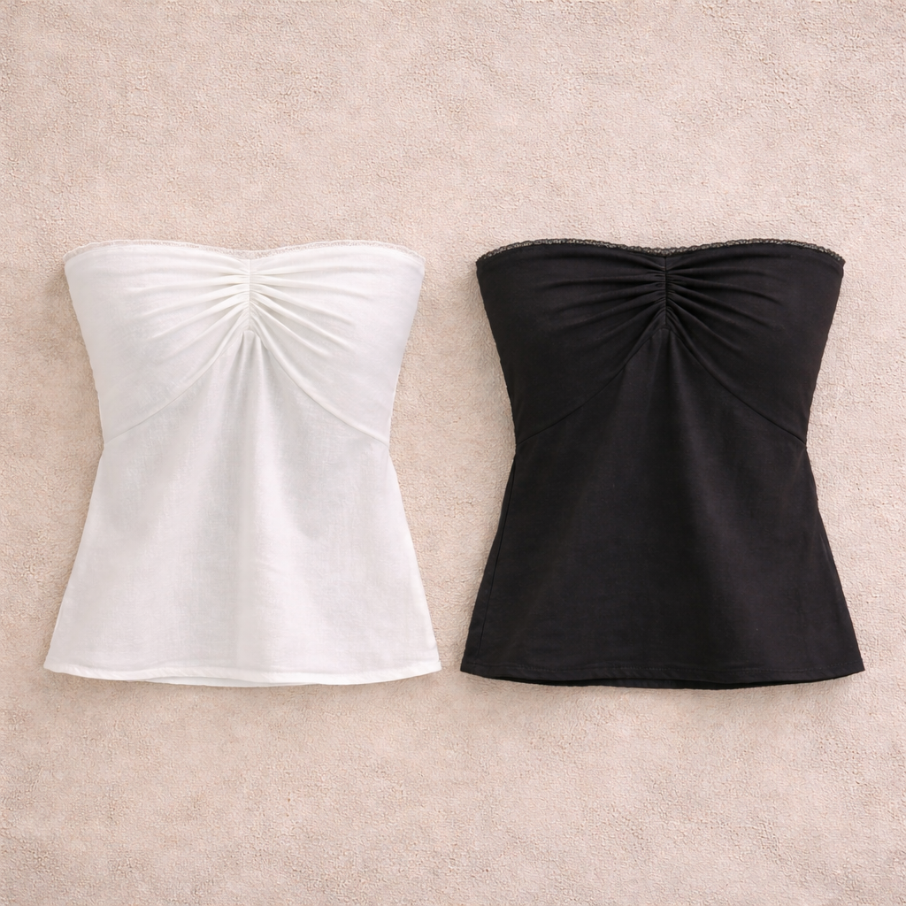 חולצת סטרפלס בגזרה מחמיאה עם תפר עדין בחזית, היוצרים מראה נשי ואלגנטי בלי מאמץ. הבד נעים וקליל על הגוף, נצמד בעדינות ונשאר נוח לאורך כל היום והערב