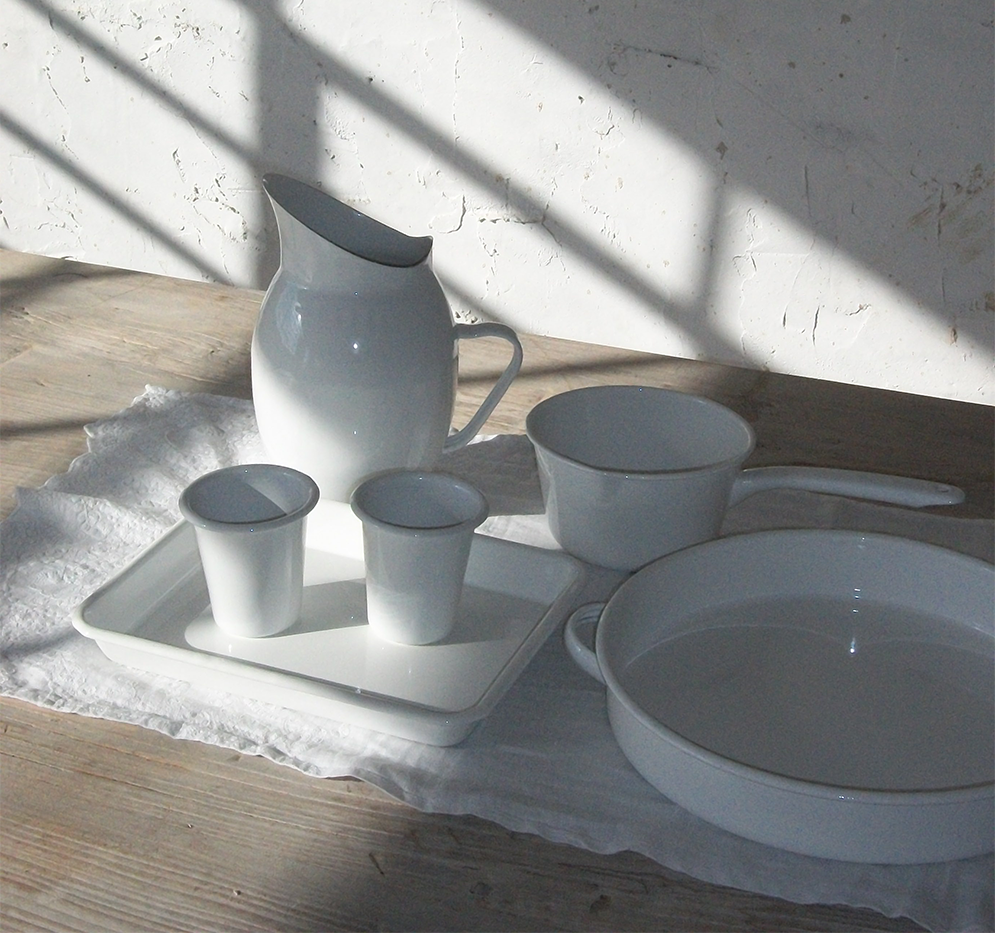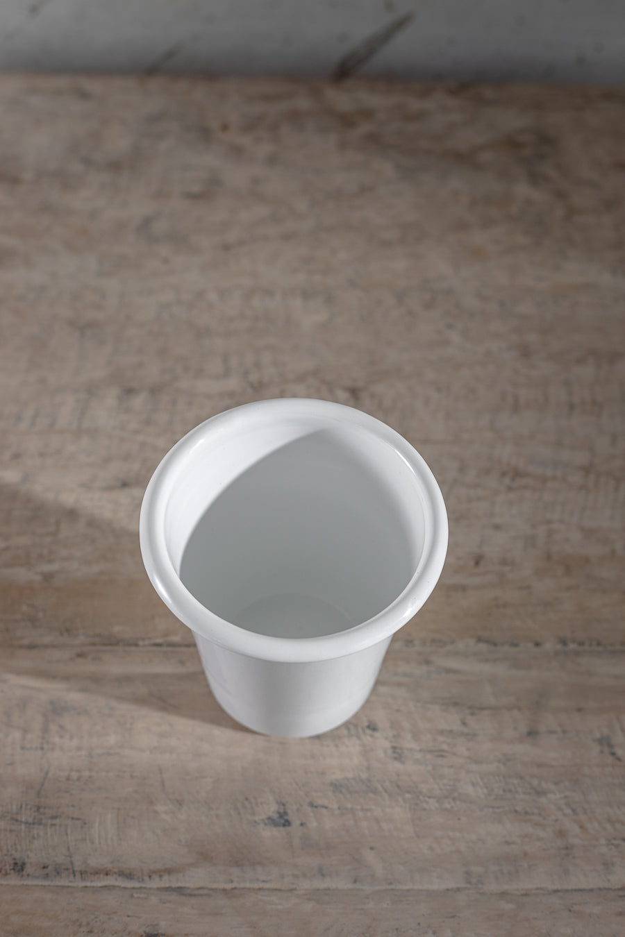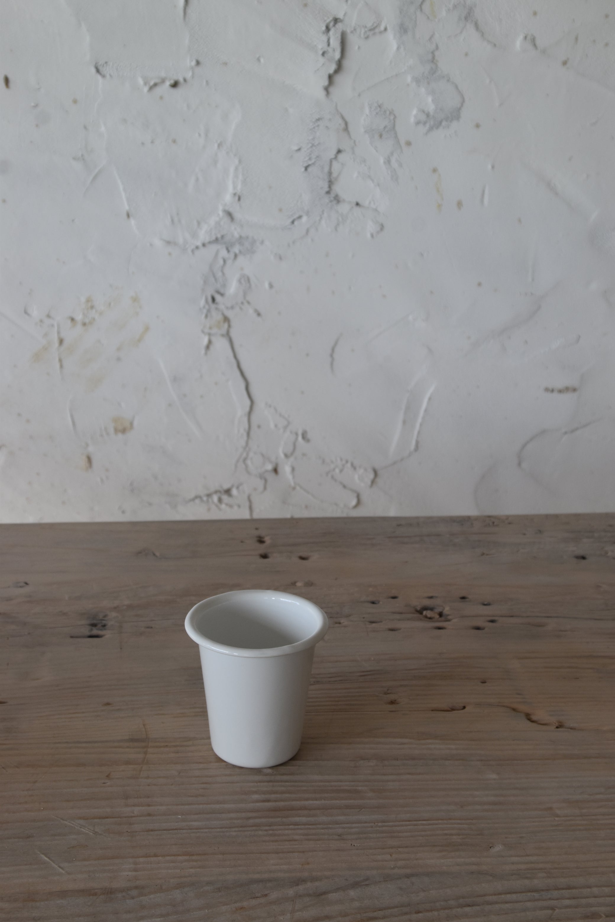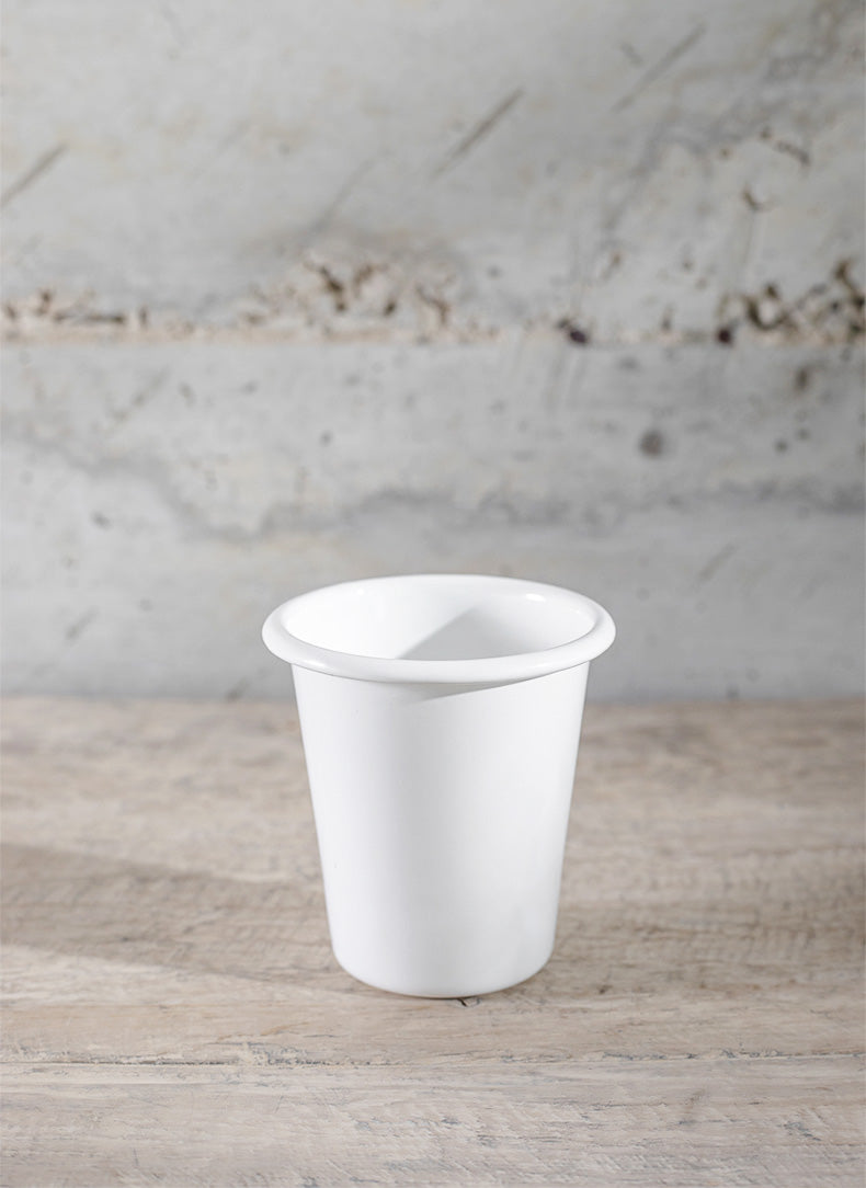 כוס אמייל בגימור לבן חלק, עמידה לאורך שנים ומתאימה לשתייה חמה או קרה