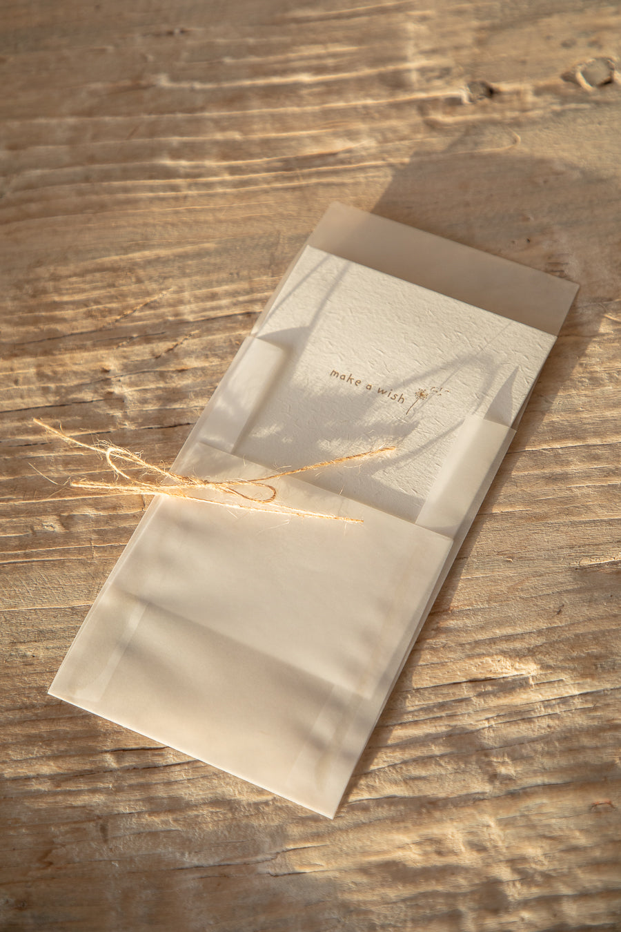 בצירוף מעטפה מנייר פרגמנט חצי שקופה וסרט יוטה לקשירה
