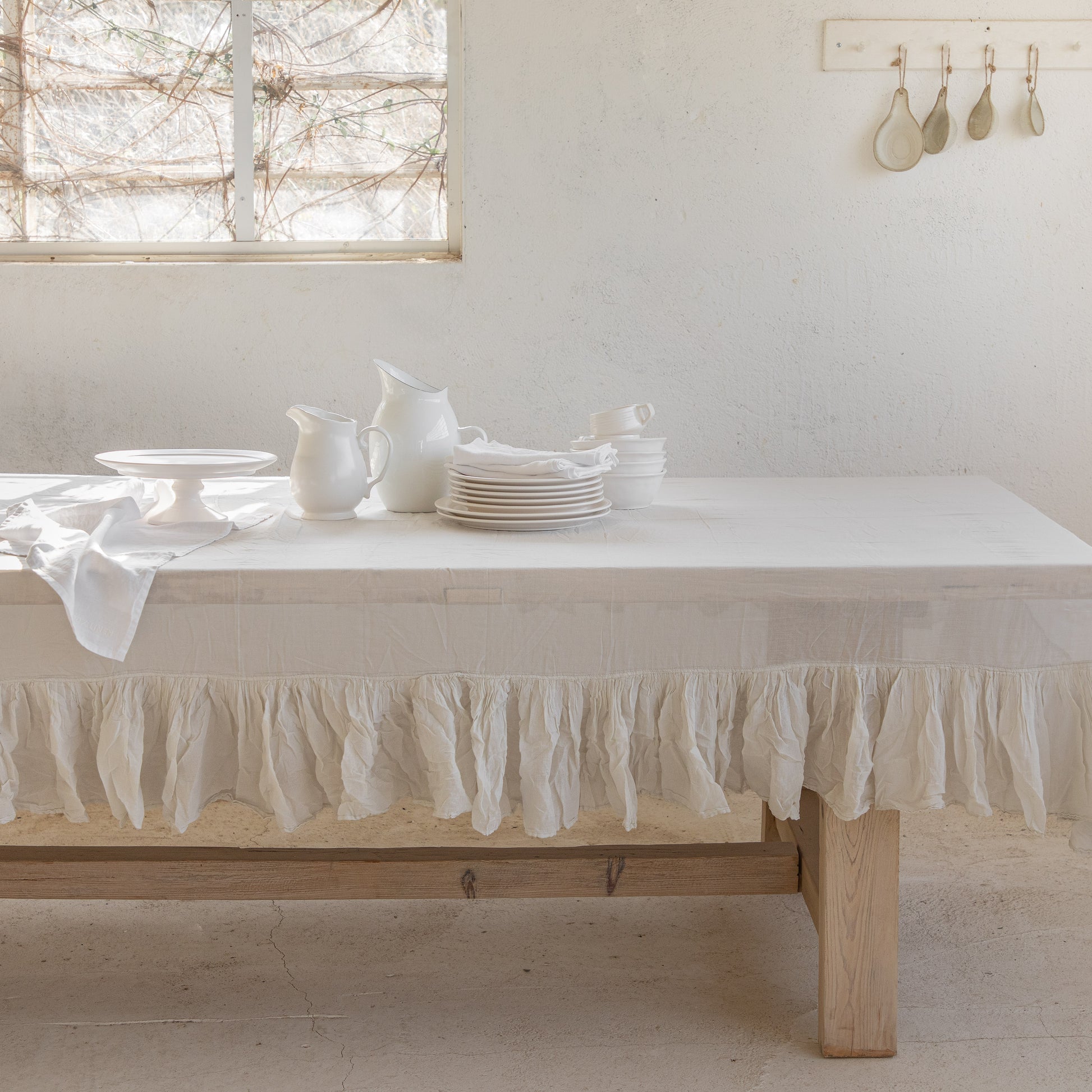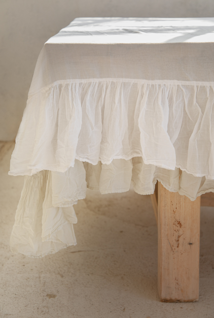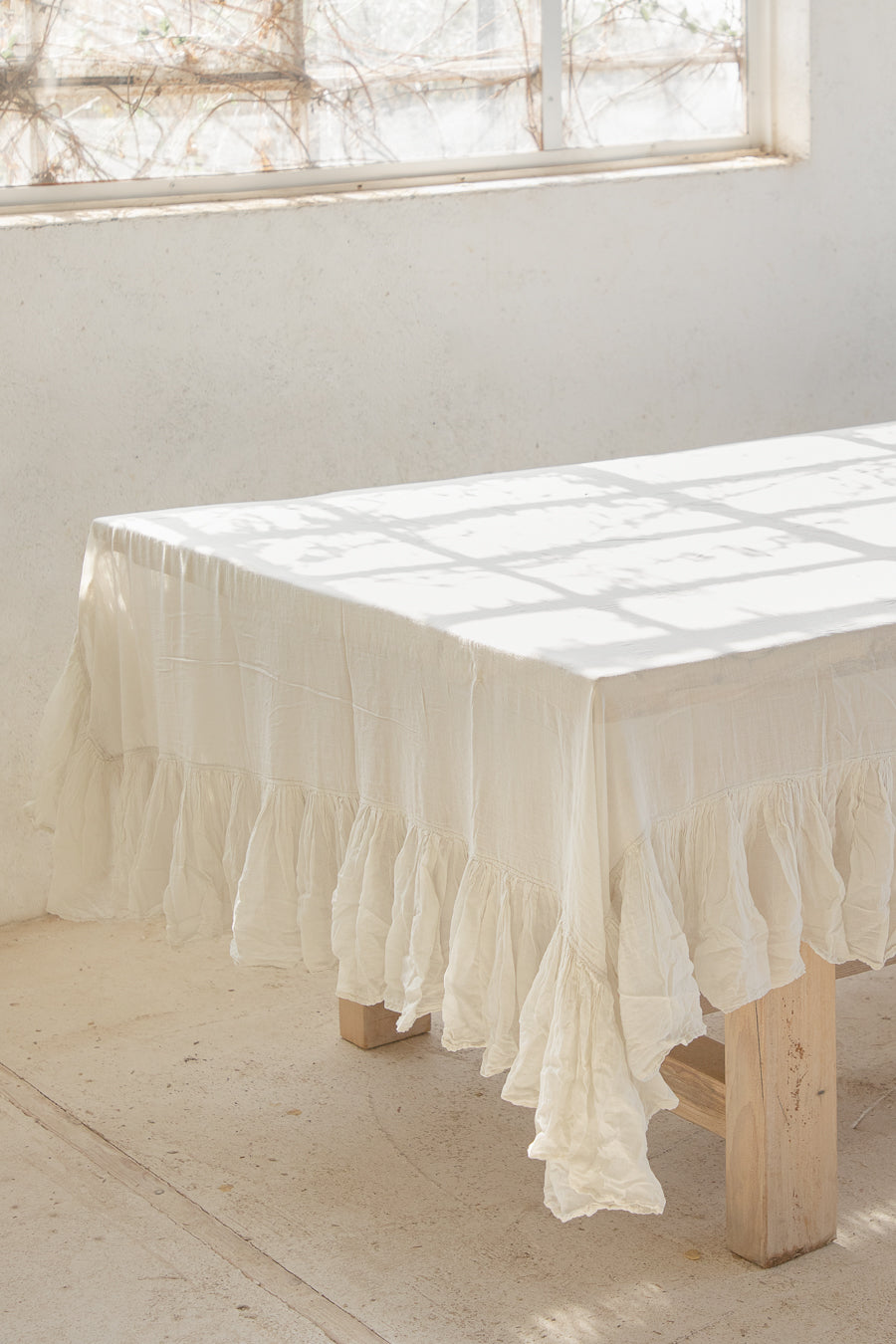 מפה רכה ונשפכת במראה כפרי-רומנטי, עשויה 100% כותנה בעלת נפילה טבעית. הקפלים  העדינים יוצרים תחושת תנועה ורוך ומעניקים לכל שולחן אווירה של שקט