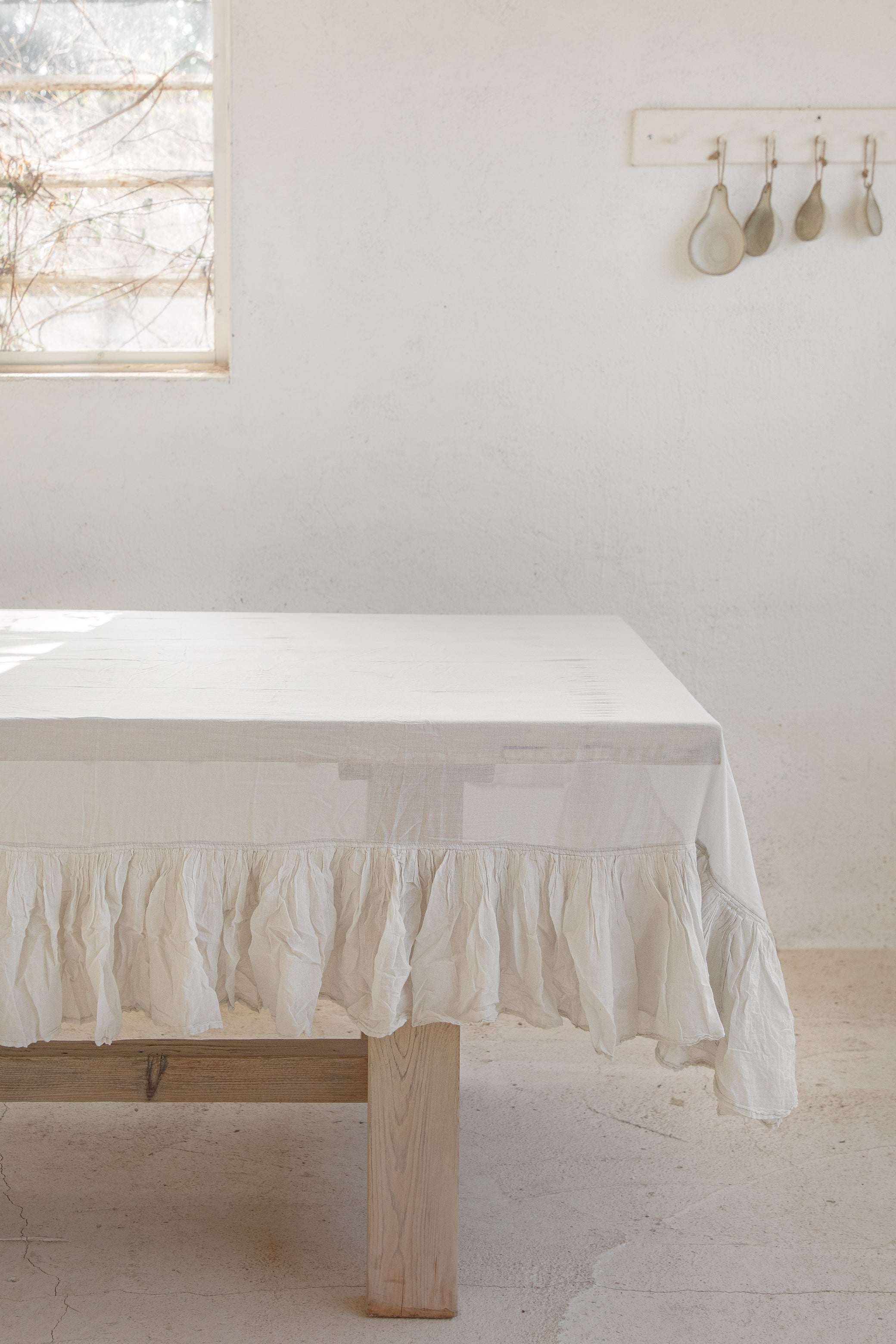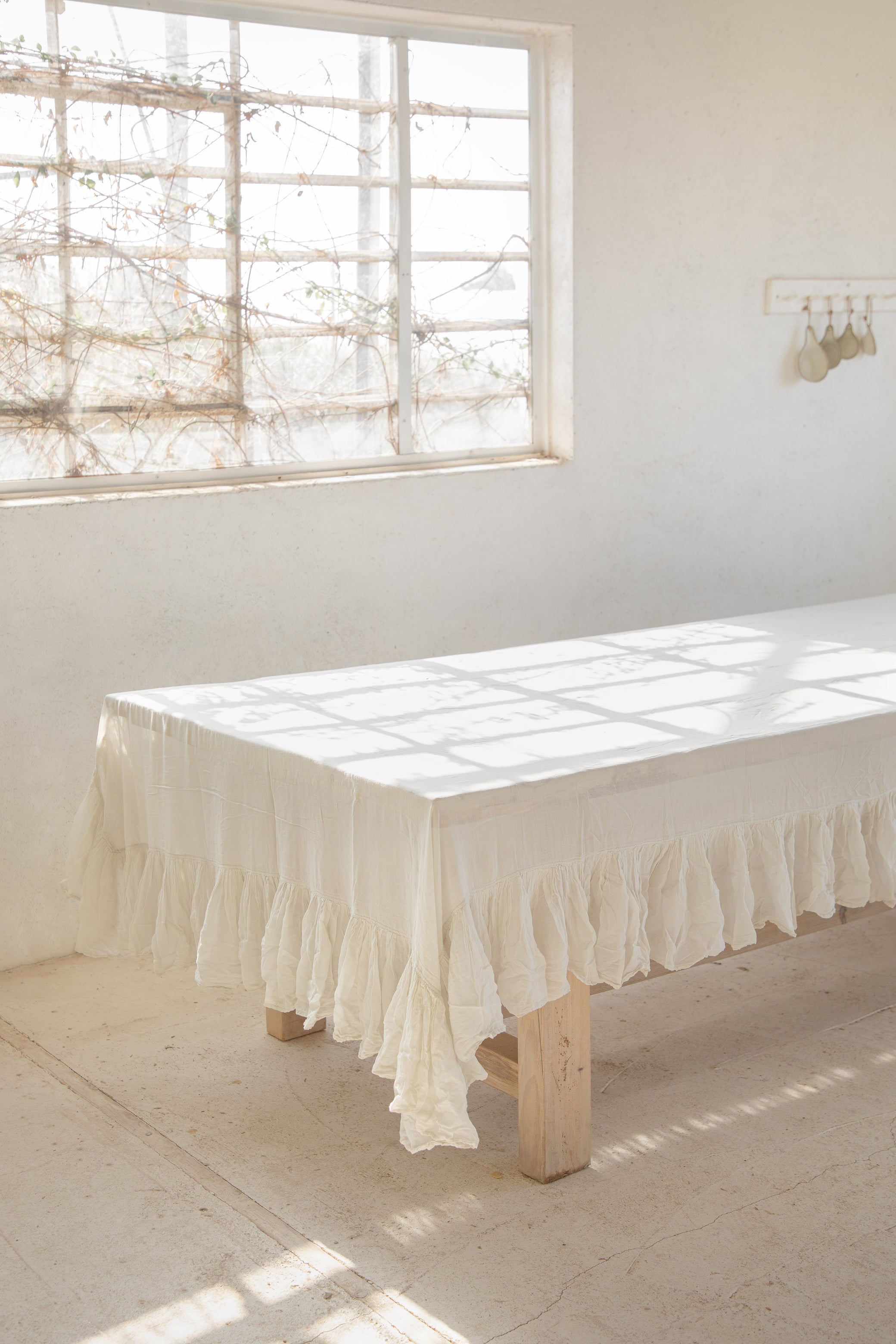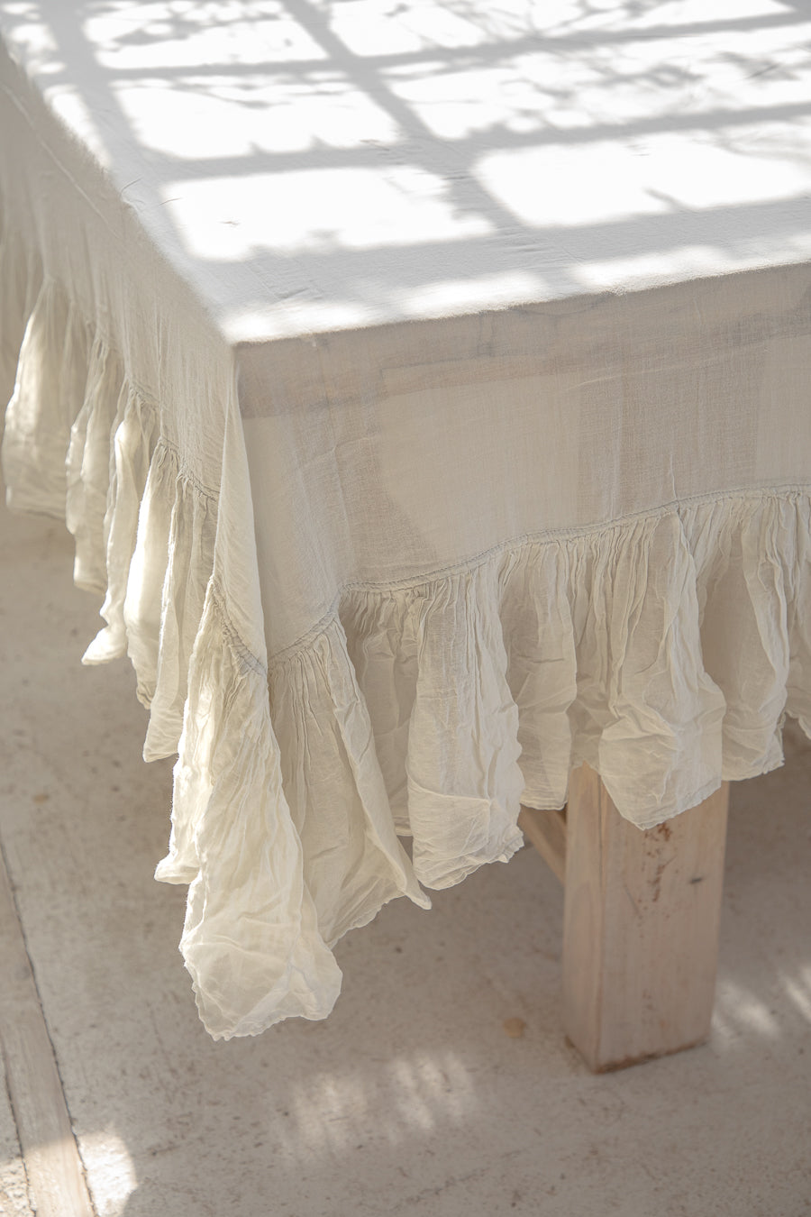 מפה רכה ונשפכת במראה כפרי-רומנטי, עשויה 100% כותנה בעלת נפילה טבעית. הקפלים  העדינים יוצרים תחושת תנועה ורוך ומעניקים לכל שולחן אווירה של שקט