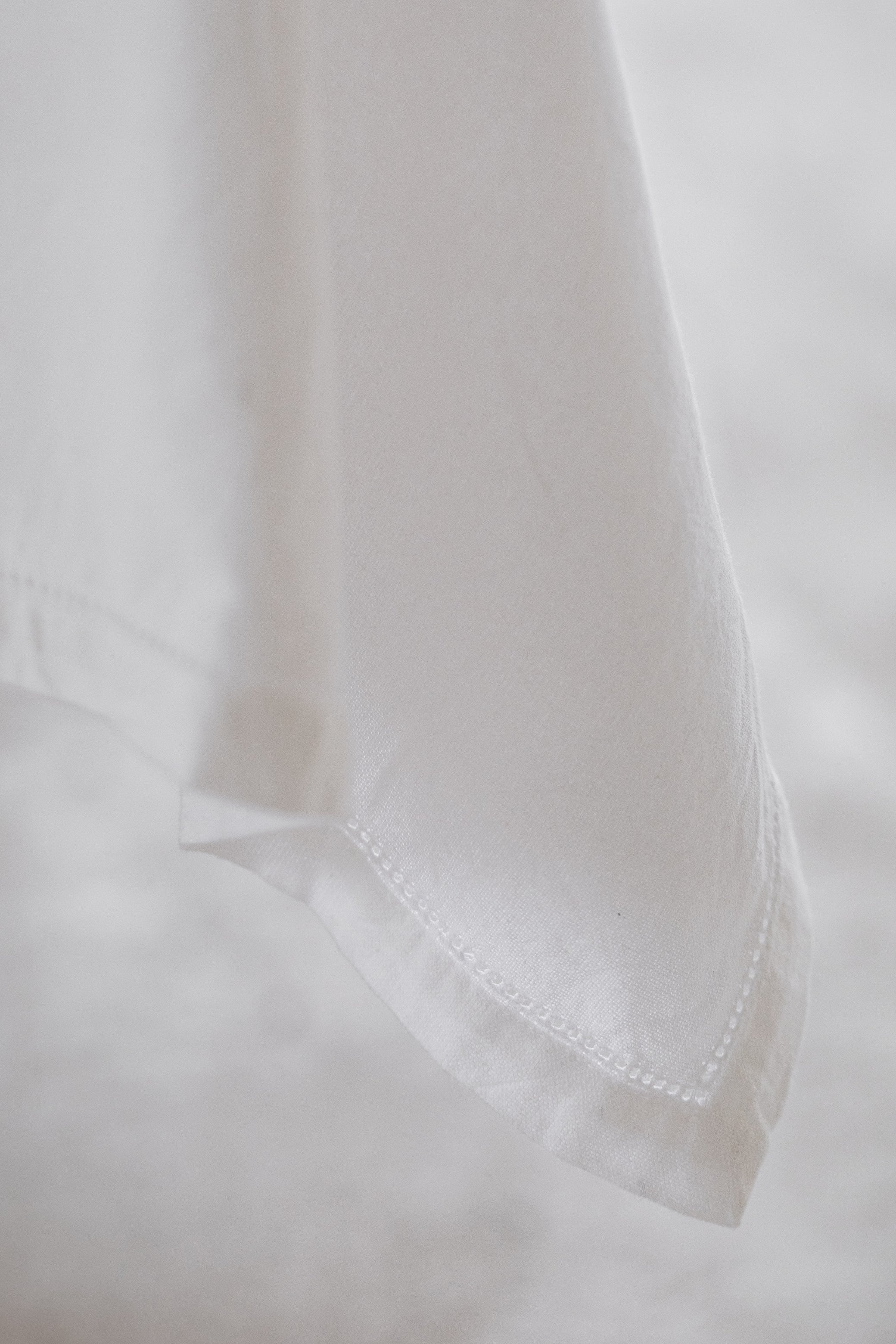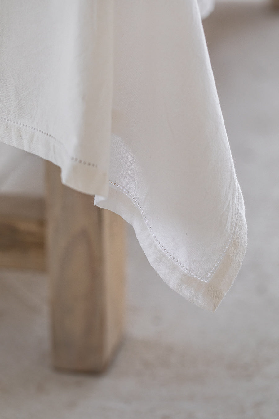 מפת שולחן בקו מינימליסטי ונקי, עשויה בד טבעי ורך, עם סיומת " הם סטיץ׳ ״ שמוסיפה אלגנטיות שקטה לכל שולחן