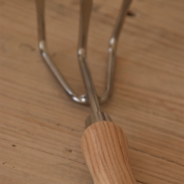 עשוי מפלדת אל חלד וידית מעץ