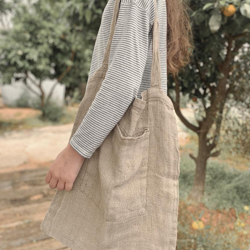 תיק פשתן גס עם כיס קדמי