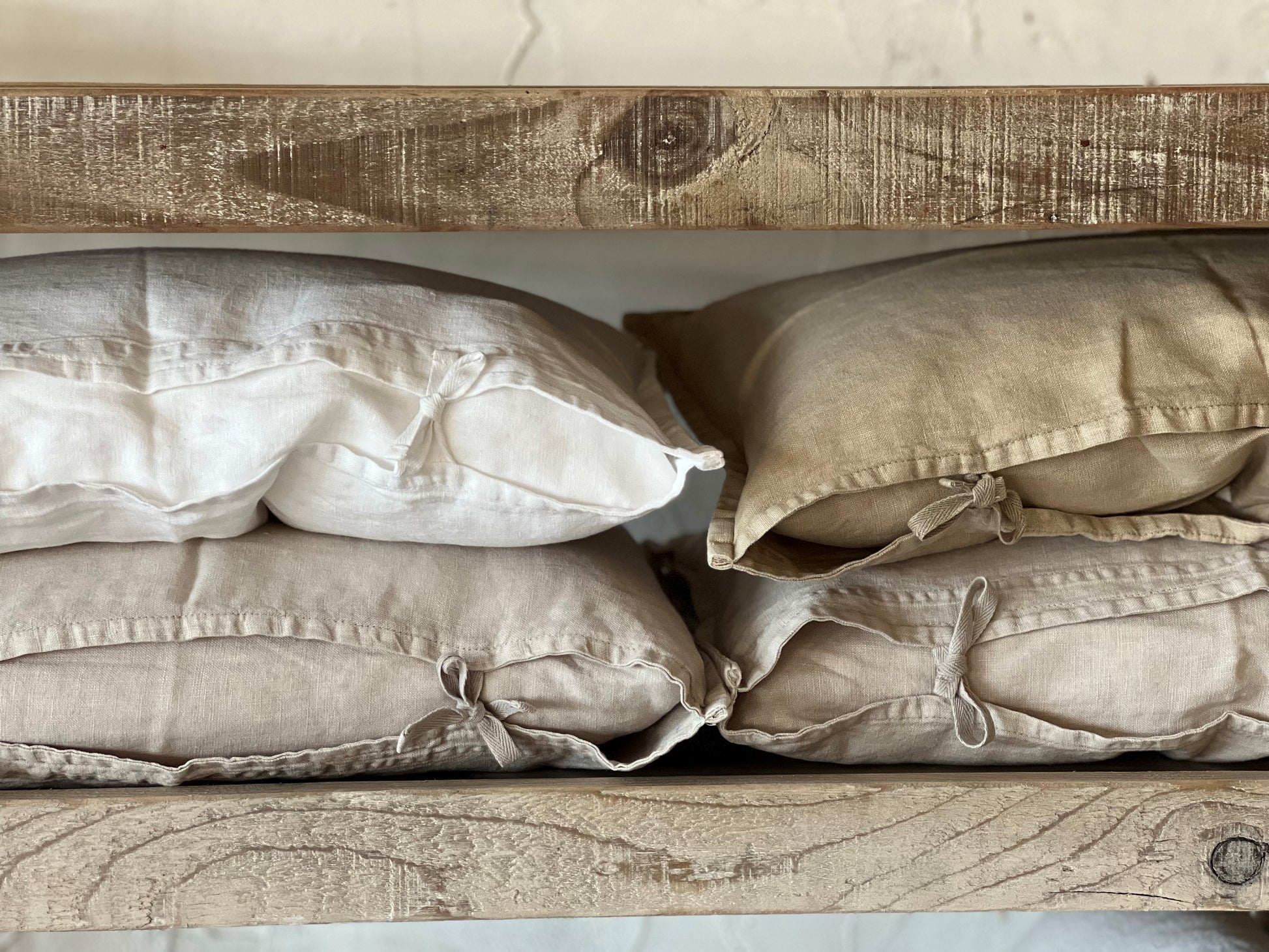 כרית פשתן סטונווש עם סגירת שני סרטים