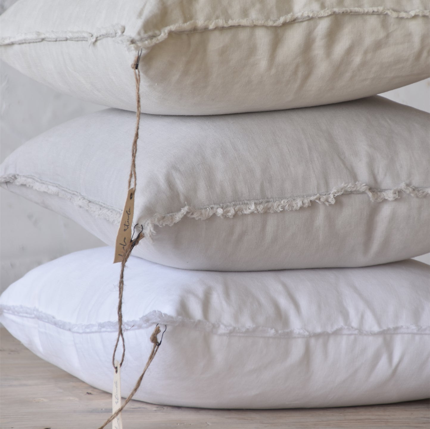 45x45 כרית פשתן חלקה עם קצוות פרומים – LOLA STUDIO